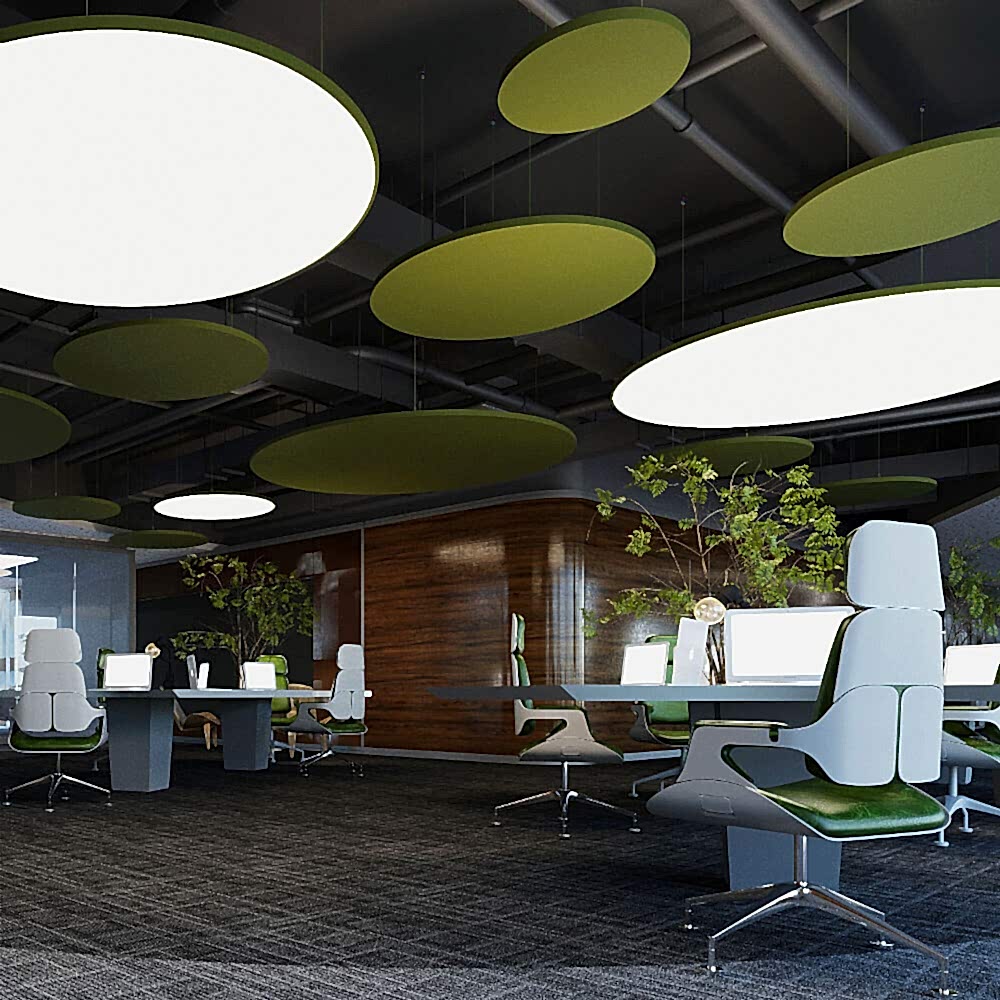 - Ofis ve Çalışma Alanları Açık ofis düzenlemeleri, çalışanların arasında işbirliği ve iletişimi teşvik ederken, aynı zamanda gürültü sorunlarına yol açabilir. Akustik kumaş kaplı paneller, bu tür ortamlarda sesin kontrol altına alınmasını sağlar. Paneller, masa arası bölmeler olarak kullanılabileceği gibi, duvar ve tavanlara da monte edilebilir. Bu sayede gürültü azalır ve çalışanların daha konsantre olabileceği, üretkenliği artıran bir ortam yaratılır.